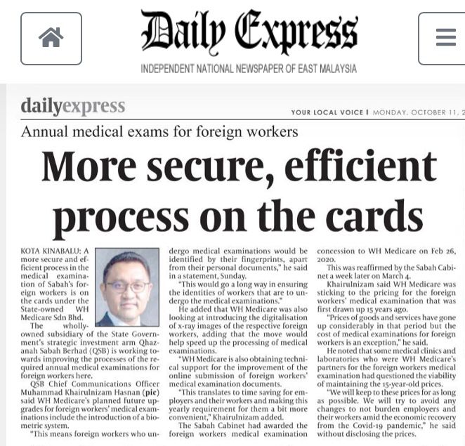 A more secure and efficient process in the medical examination of Sabah’s foreign workers is on the cards under the State-owned WH Medicare Sdn Bhd.