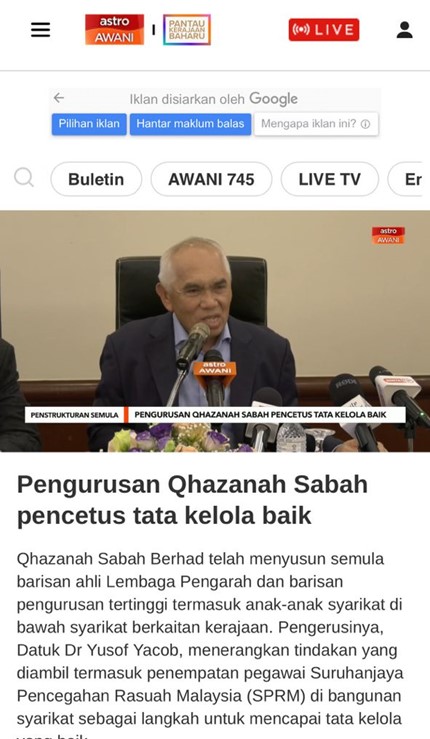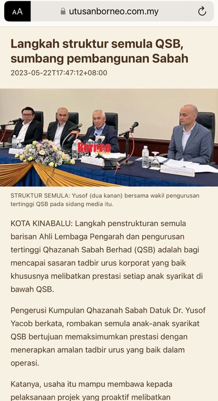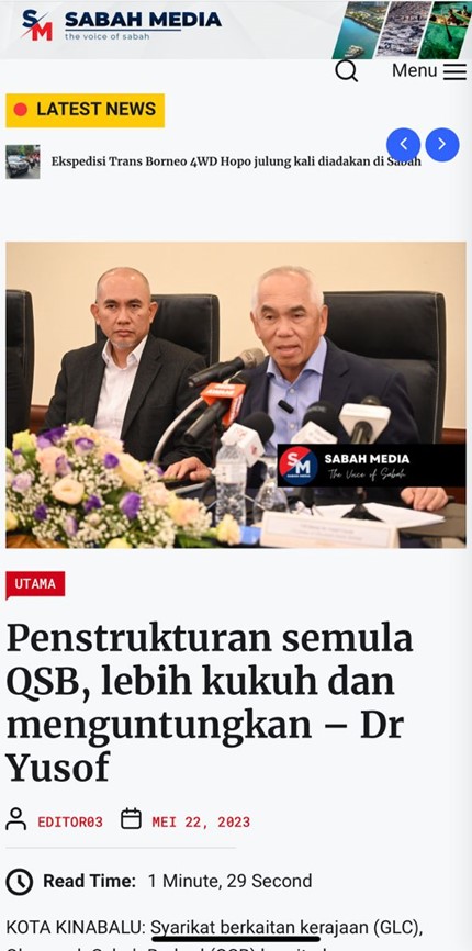 22nd May 2023 – During a press conference that was organised in conjunction with the first 100 days with Qhazanah Sabah Berhad (QSB), Chairman YB Datuk Dr Yusof Yacob has revealed that the restructuring of the Board of Directors and top management of QSB and its subsidiary companies has been carried out to ensure we are placing the right talent to the right job, sustainability of revenue streams, and to achieve good corporate governance targets, particularly involving the performance of each subsidiary under QSB.