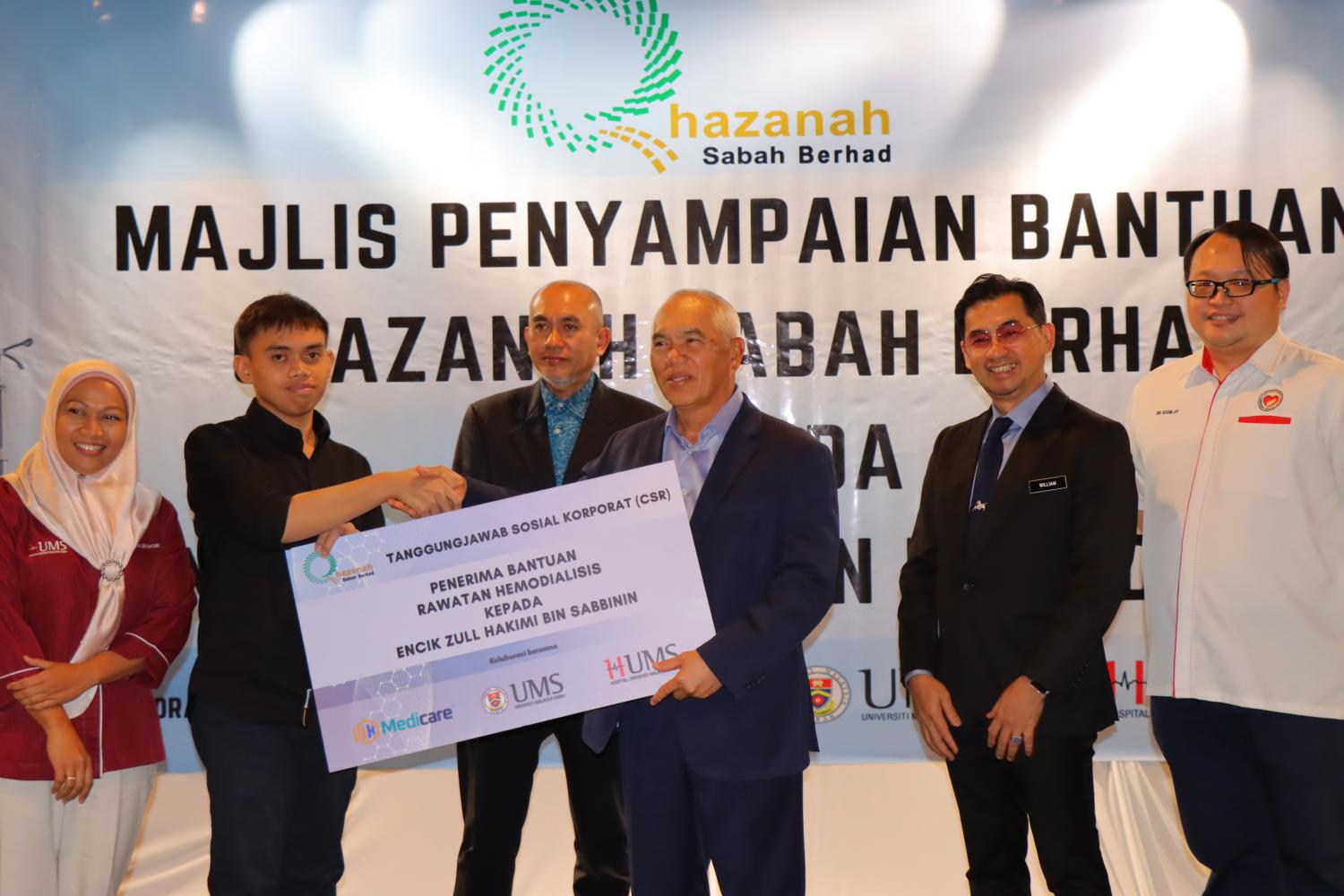 Qhazanah Sabah Berhad (QSB) held a handover ceremony on November 7th (Thursday) at the Qhazanah Sabah Event Hall to provide financial support for haemodialysis treatment to two B40 patients, Encik Murpi Bin Duriat and Encik Zull Hakimi Bin Sabbinin. The mock cheque was presented by YB Datuk Dr. Yusof Yacob, Chairman of Qhazanah Sabah Berhad, marking QSB’s continued commitment to supporting Sabah’s deserving community in receiving necessary medical care.