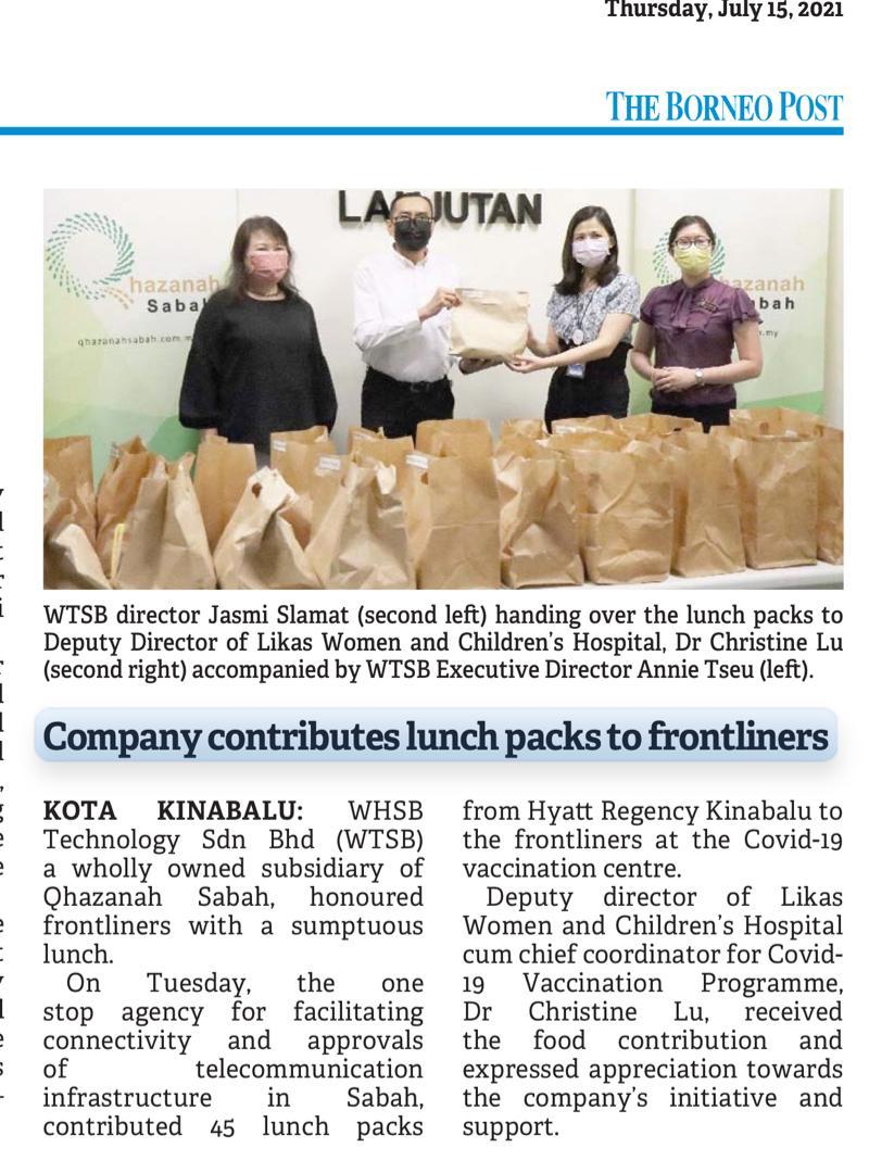 WHSB Technology Sdn Bhd (WTSB) a wholly owned subsidiary of Qhazanah Sabah Berhad honoured frontliners with a sumptuous lunch.